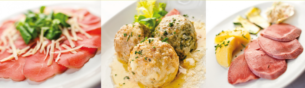 Heimische_Schmankerln wie Schlutz_Krapfen, Brennnessel_Spatzlen, Milzschnitten_Suppe, a Brettl_Marende, Allerlei_Knödel, Saurs_Koschterle, Kalbs_Pökelzunge, oder ein leckerer Kaiser_Schmarren.